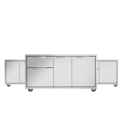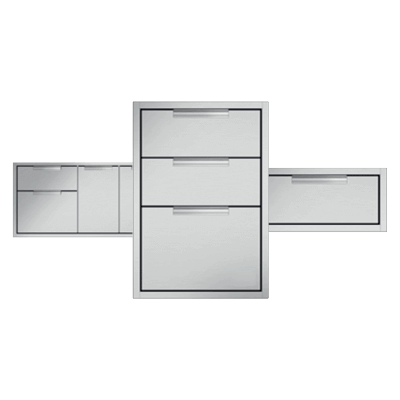 Hidden ingenuity makes DCS storage systems essential to a well-designed outdoor kitchen. There is no need to leave the outdoor kitchen for cups or cutlery, spices or charcoal, with storage suited to all the essentials.